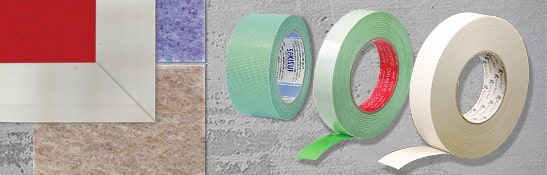 簡単にカットできるへの字や粘着テープ等、床材施工に役立つ関連資材をご紹介しています。